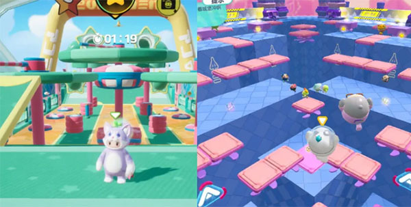 元梦【潮起潮落】的亮点是波形障碍墙和伸缩踏脚板,而蛋子【波浪迷宫】也是波浪迷宫。虽然画风和地图背景不同,但核心设计是一样的。作为蛋子的老地图,虽然画面略逊一筹,但设计和后来的元梦一样成熟,说明蛋子的技巧还是比较高的。
