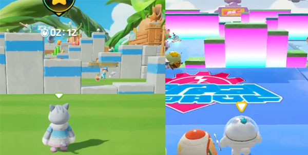 元梦【惊奇冒险】是各种障碍元素的堆叠。亮点是Y轴上设计了多层轨道。有一条通关路径,上层轨道更快,从上层落下后可以继续通过下层轨道。在这个设计中,很多地图上都有鸡蛋。例如,[气球城堡]的图片非常明显。上跳板可以快速通关,也可以通过下跳板继续攀爬。