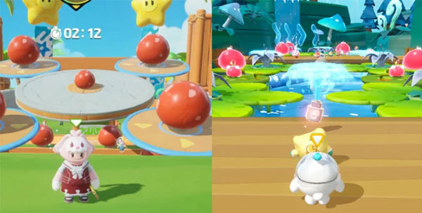 元梦【变形蘑菇】这张地图的亮点是玩家会飞的蘑菇,这个设计也出现在蛋子【植物疯狂】的地图上,前者和后者一样增加了一些旋转变化。但是元梦里没有蛋子的龙卷风和水柱。体验一下,蛋子的地图更丰富有趣,价值更高。