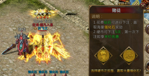 强化石可通过盟重城传送门右侧的NPC进行强化试验,每天可稳定获得强化石。