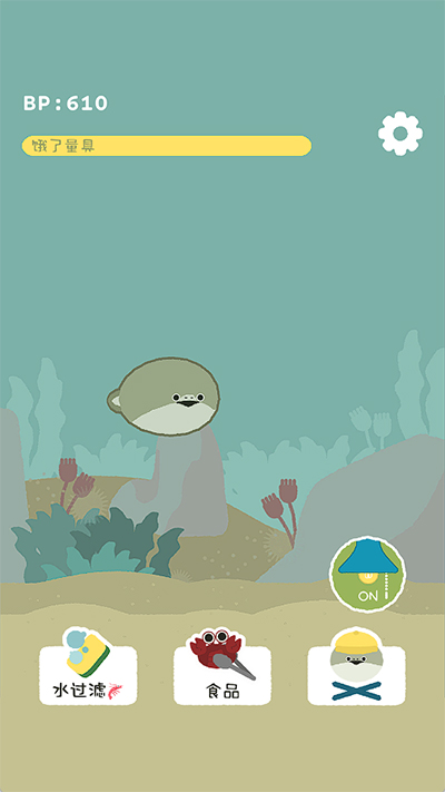 2、成功孵化后,我们可以喂食萨卡班甲鱼。萨卡班甲鱼的饥饿可以从上面的黄色进度条中理解。点击下面的食物按钮