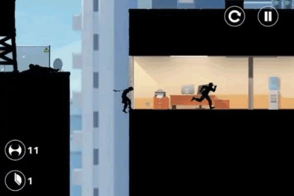 6、游戏将角色弱化成黑色阴影,让你的注意力集中在跑酷上;
