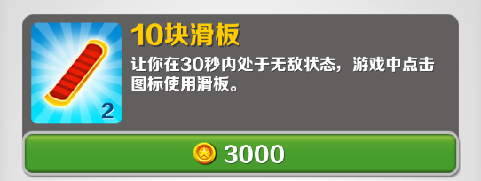 拿到运动鞋后,你可以在道具有效时间内跳得比平时高。如果玩家在跳跃时头部遇到天花板,不使用滑板,游戏就会结束。
