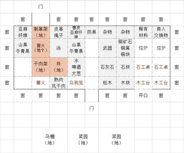 20箱,1篝火,2菜园(地)、1乌鸦笼