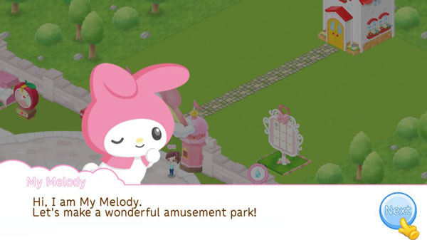 3、让我们和凯蒂猫一起建一个精彩的游乐园。点击下一步继续