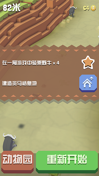 斑马:基本没用,速度中等,升级栖息地可以刷钱。生气后会一直跳,比野牛和野猪频率更高,适合刷钱。但是控制方向会变得更加困难,但是你不会被甩在后面。