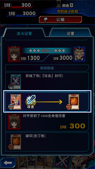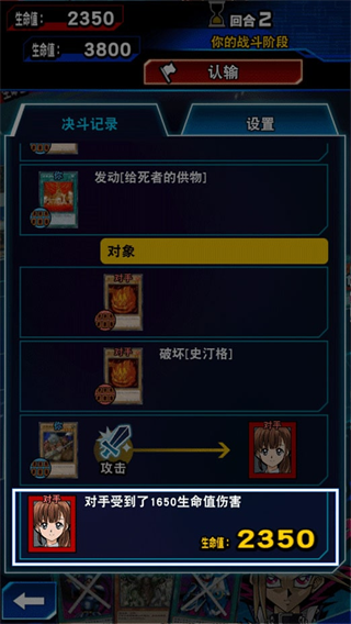 用怪物攻击对手可以伤害对方的生命值。拖动卡片选择目标,然后攻击。