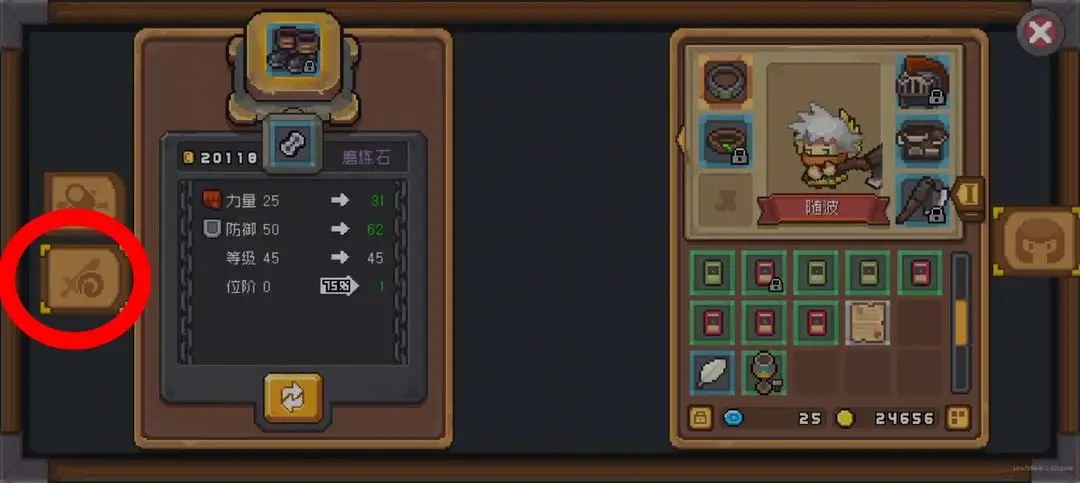 女铁匠勾选左侧第二栏,放入装备,磨炼石头