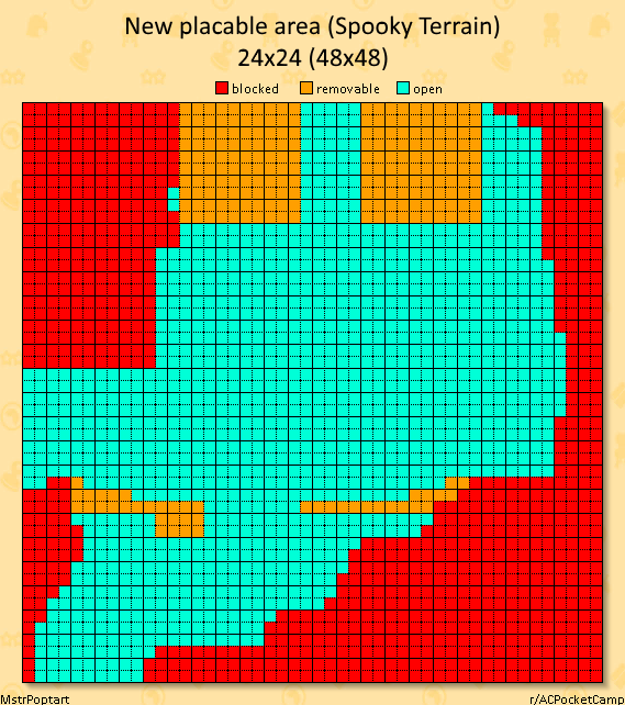 1、营地面积为24x24(48x48),最多可放置100件物品。