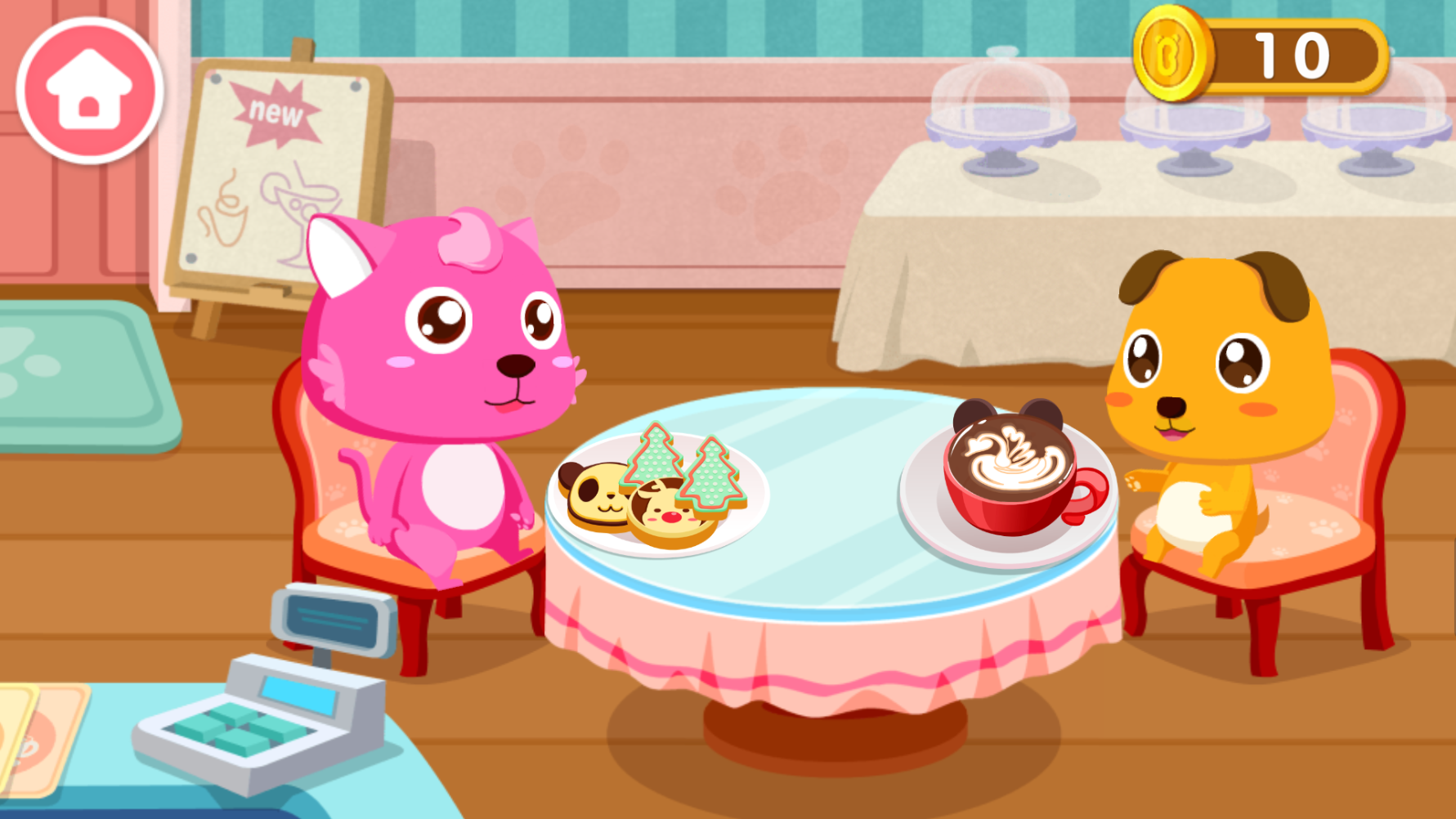 奇妙的咖啡餐厅这是一款由婴儿巴士制作的幼儿教育游戏,旨在让婴儿通过游戏轻松了解甜点、厨具,扩大沟通能力。奇妙的咖啡餐厅属于超级可爱的商业游戏。在奇妙的咖啡餐厅在游戏中,餐厅的运营过程将被模拟,以便婴儿能够清楚地了解餐厅的运营。从订购客人,到烘焙甜点,再到打扫桌子,招待新客人,这些都是由婴儿自己完成的。这可以提高婴儿的动手操作能力,让婴儿感受到操作的乐趣。神奇的咖啡馆游戏操作简单,你也可以自己做食物,一起做美味的咖啡食品。