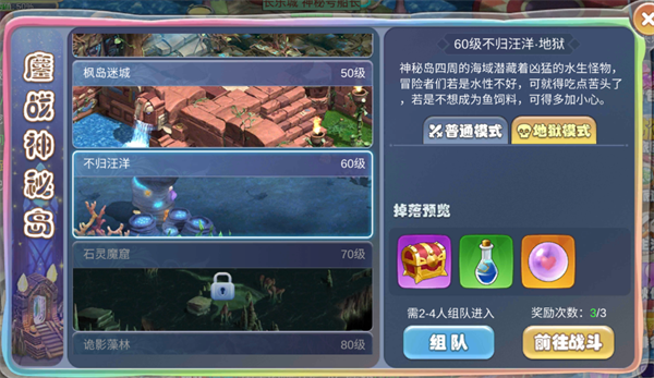 组队副本玩法,完成相应的任务副本可获得相应的经验、药品等材料!