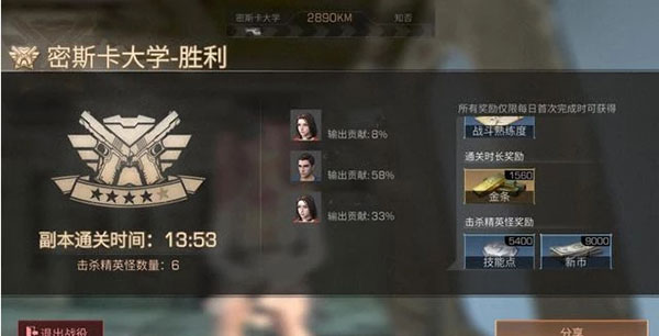打四星的密斯卡大学,15分钟内就能拿到1560金条和9000新币;做军事演习可以拿到4000新币。
