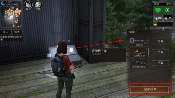 野外的世界总是危险的,我们总是会遇到威胁我们生命的人。比如僵尸、狼或者一些被感染的动物!所以我们需要在野外搜索一些宝箱!只要你捡起它们,里面可能会有一些子弹或枪。