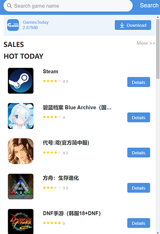 2、然后在gametoday上安装下载游戏,直接在99手游加速器上启动加速!