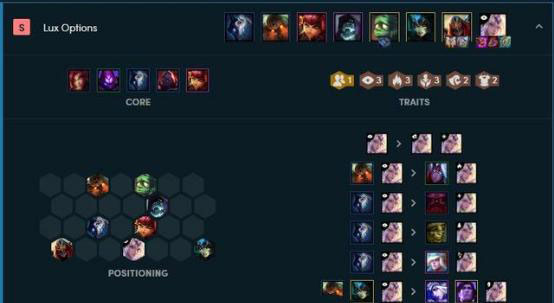 在早期阶段,保留星际棋子以帮助他们获得更好的经济。1-3,4,2-5,5。法律装备提供给拉克丝,坦诚装备提供给塞拉斯。他们可以取得连胜,经济可以直接起飞。即使没有大连胜,因为有星际棋子,每一轮的强度和经济都可以过渡到前期和中期。