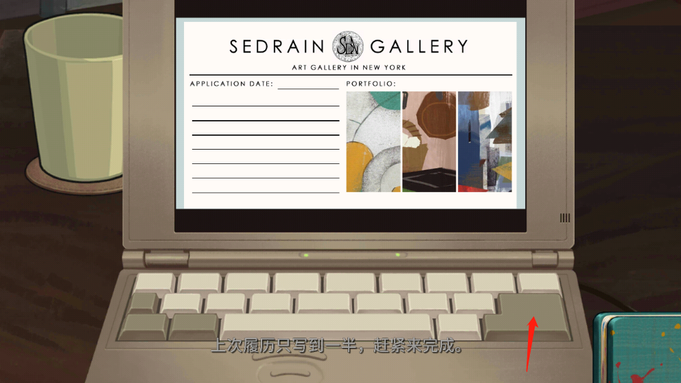 10、然后点击桌上的电脑,不断点击返回按钮完成简历;