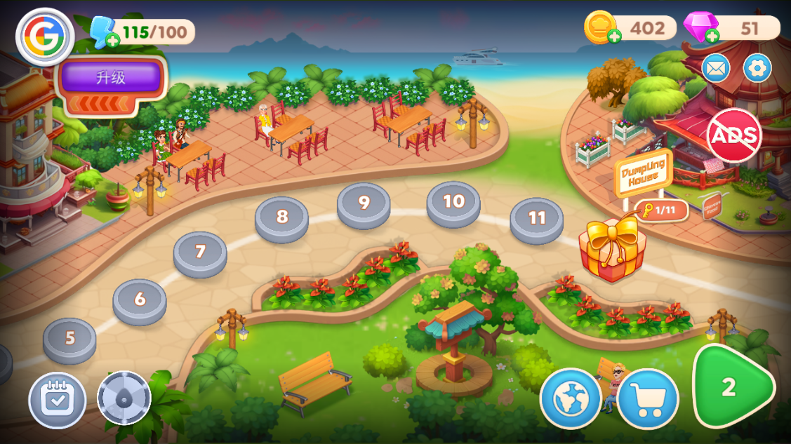 7、每位顾客晚饭后都会支付金币,当玩家收集到足够的金币时,就可以顺利通过,顺利通过后也可以获得奖励;