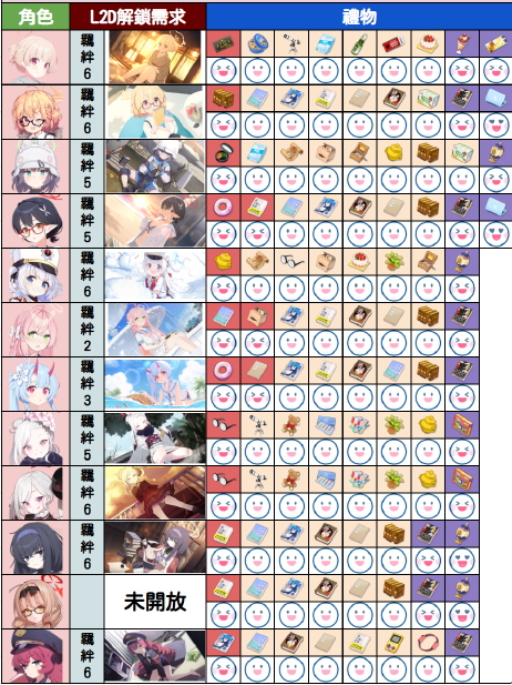 最后,让我们分享一下夜猫老板整理的善意度数值增加表和一些学生的礼物偏好表。我希望它能帮助你