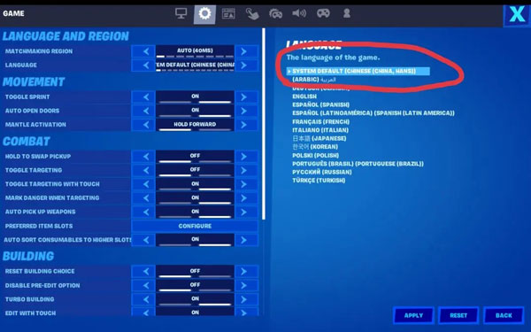 2、LANGUAGE(语言)选项设置中点