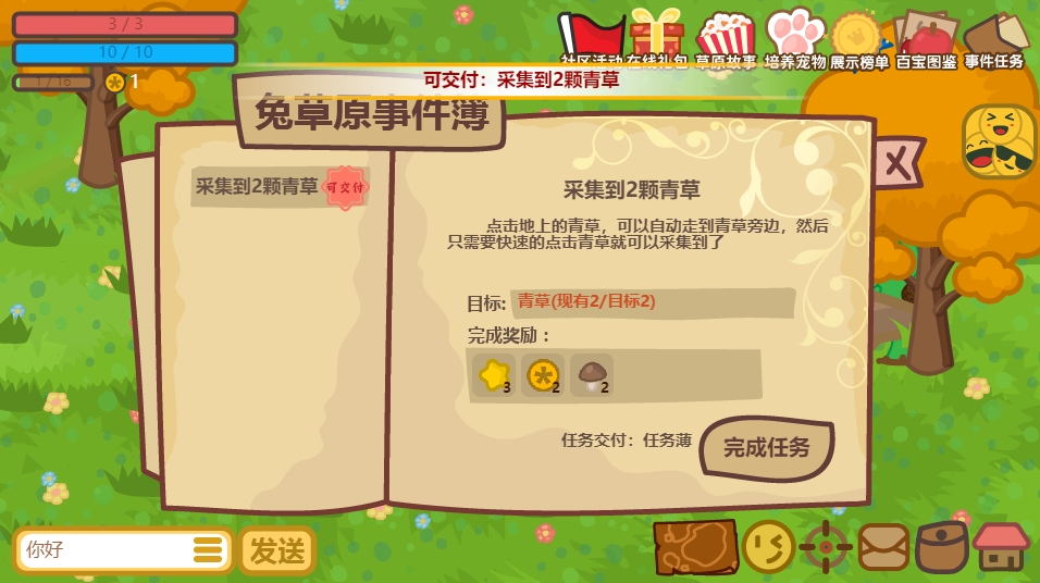 5、采集到两颗青草,现在玩家需要走到青草的旁边;