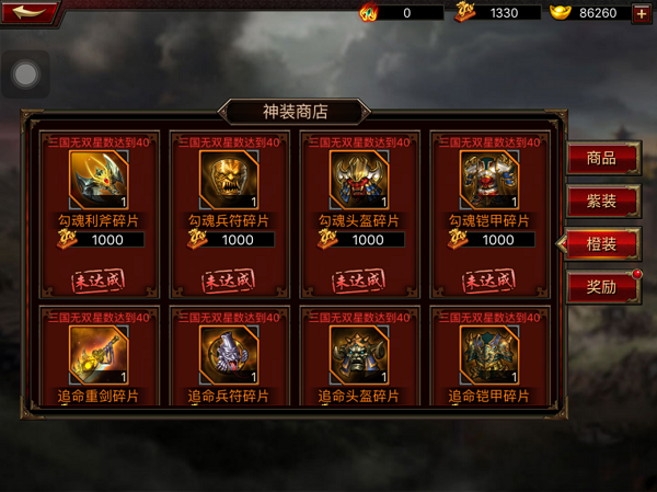 【三国英传-争霸】装备质量分为绿色、蓝色、紫色、橙色和红色。