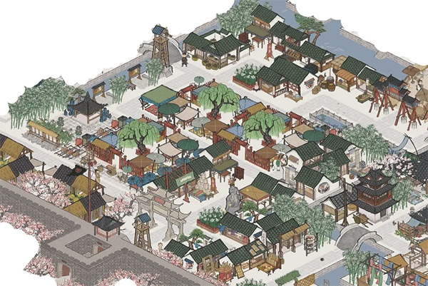 结合江南水乡的特点,在不同城市创造不同的风格,解锁专属建筑。
