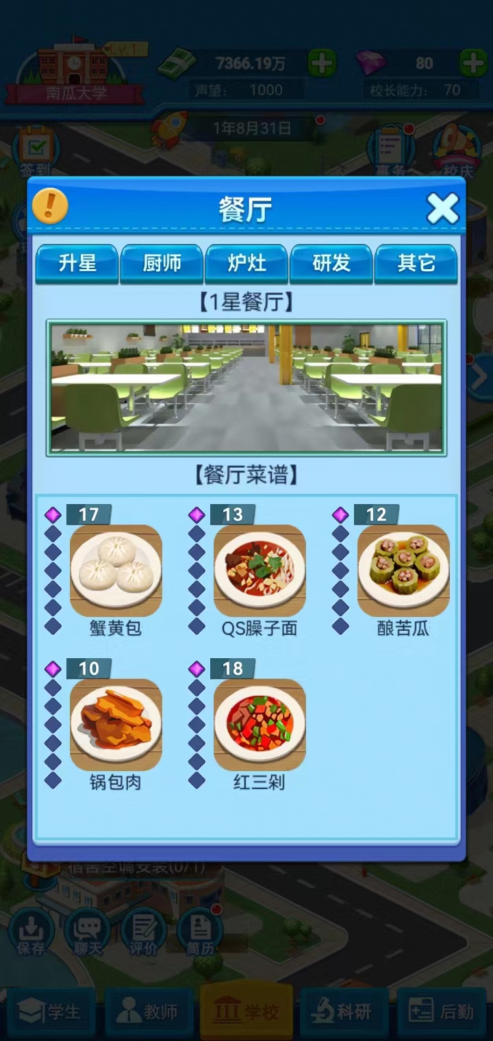 开局选择市区 以德兴校 四级厨师,以德兴校是主要,利益最大