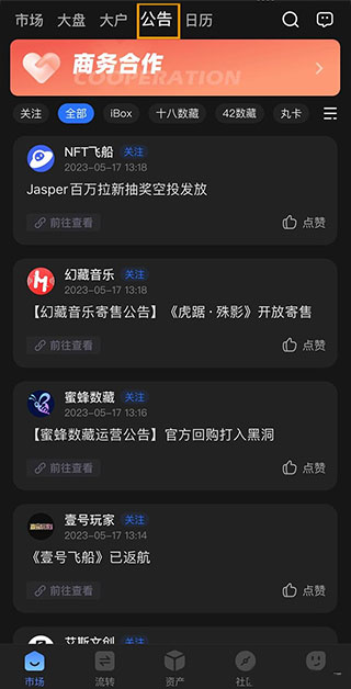 与多家头部数字收藏平台合作,其核心功能包括销售日历、市场数据、市场数据、资产管理、公告推送、垂直兴趣社区和流通中心,让我们对盯链提供的各种功能进行合规评估。