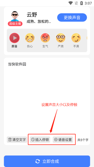 2、输入需要配音的文本,单击上方更换声音,选择不同的声音