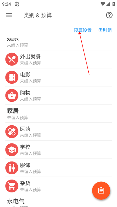 2、点击右上角的预算设置,设置每月不同类别消费的预算金额。