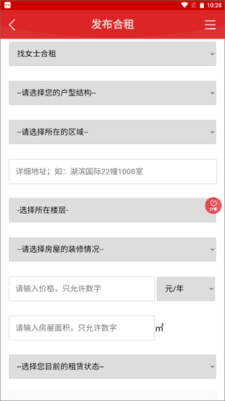 3、输入您的合租要求,房屋的具体信息,以及您的个人联系方式,最后提交合租即可成功发布。