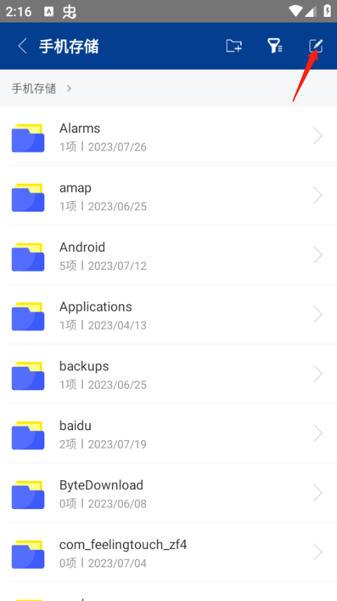 1、进入在当快免费下载的zarchiver绿色版,打开文件界面,点击手机存储。