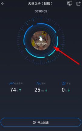 4、在等待奇游手机游戏加速器加速后,我们可以点击中央按钮打开游戏,以享受更稳定的网络服务。