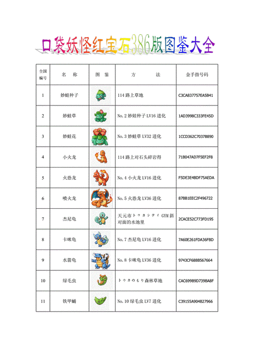 在口袋妖怪红宝石中,有许多常用的秘籍编号,它们涵盖了各个方面的游戏内容,包括捕捉口袋妖怪、获得道具、解锁隐藏任务等。以下是一些常见的秘籍编号大全: