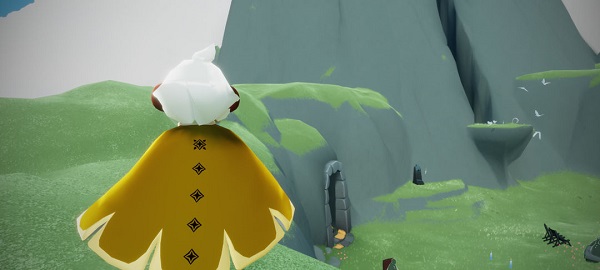 刚进场景就爬上眼前的巨大岩石(你没听错)。我建议先进入洞穴,然后从岩石后面爬上。有一块岩石的脉络直接穿过山顶,不允许飞行,然后得到一个光翅膀(图中已经得到)。