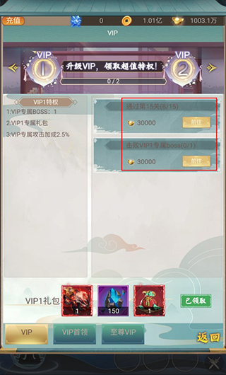 玩家点击屏幕左边的免费VIP即可进入,完成上方的挑战任务即可免费激活VIP,领取VIP礼包,而且挑战任务都非常轻松。