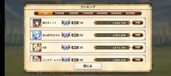 竞技场:分为普通场(带排行榜)和EX场(无排行榜)。每天可以玩三次,双场一共六次,可以获得竞技场币和累计分数奖励,排行榜可以获得额外奖励。(不要用修改器,我加了很多排名第一的神仙,都是排名结算后再也没有上过线,应该封了)。关于竞技场配队的问题,可以上面(https://gamewith.jp/konosubafd/)查看团队推荐,这个链接是苏青手机游戏wiki,日服进度。日服排名前十的大佬之一是比利比利的up主,可以参考他的团队。UID:567912455。也可以查看排行榜1-3万名玩家配置。