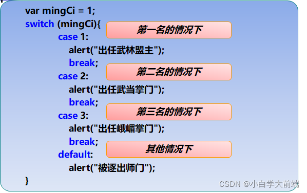 2、SWITCH语句的字面意思是开关,是用来进行多重选择。